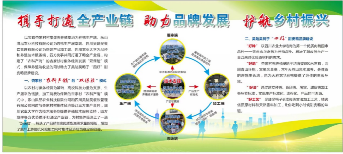 据悉,宝峰彝族乡杏家村养鸭场基地筹建于2023年5月,同年10月完成建设并投入使用。村集体通过与乐山洪品农业科技有限公司签订天府农华麻鸭商品鸭养殖合同,降低养殖风险,截止2024年底,村集体共出栏商品肉鸭9万余只,营收约270万元,创造利润约26万元。本次种鸭养殖模式中,三家企业将以天府农华麻羽为载体,依托吴鸭子乐山甜皮鸭市场,实现优势互补和全产业链闭环,实现吴鸭子产品溯源和品牌提升,助力杏家村村集体经济发展。