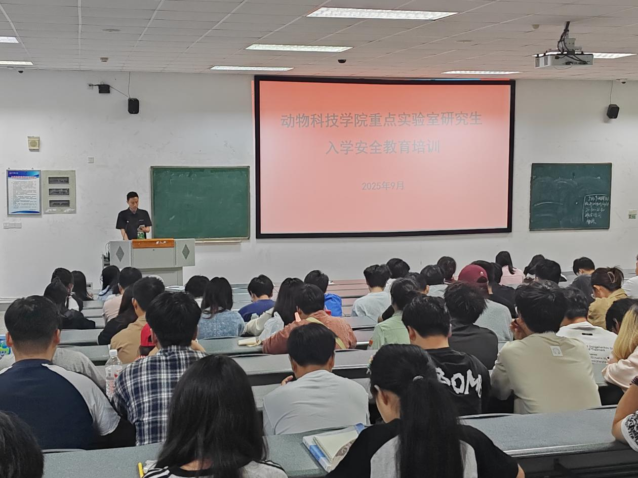 培训会上,王林杰首先介绍了学院重点实验室各类平台的基本情况,以及雅安畜禽基地的总体布局、功能定位及管理体系。他结合近年来学校发生的实验室安全事故真实案例,为同学们上了一堂生动而深刻的安全警示课。通过对实验室火灾等典型事故的深入剖析,详细讲解了预防、应对及逃生自救等知识要点,强调了“安全第一,预防为主”的重要性,要求同学们从入学伊始就要牢牢树立实验室安全责任意识,认真落实各项管理规定。