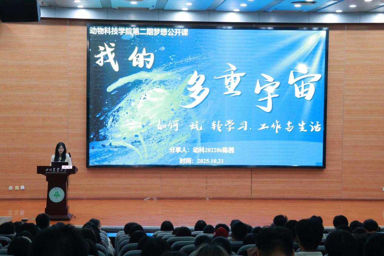“梦想公开课”作为动物科技学院学生成长引导的品牌活动之一,持续致力于搭建高低年级交流平台,通过榜样引领,助力每一位动科学子在大学阶段找准方向、勇敢追梦。