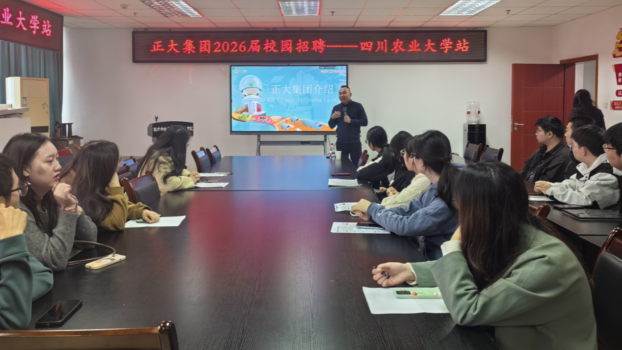 宣讲伊始,正大集团招聘负责人系统介绍了公司覆盖种植、饲料、养殖到食品加工的全产业链布局。