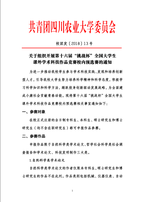 现将我校第十六届“挑战杯”全国大学生课外学术科技作品竞赛的通知发给你们,请大家积极参赛!