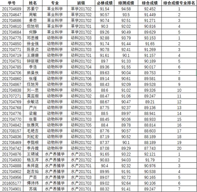 学院总名额为29名,其中1名2017级的优秀学生标兵直接获得推免资格。剩余的28个名额按照学生人数分配至三个专业,专业间可调节使用。具体指标分配为:动物科学专业16名,草业科学专业5名,水产养殖学专业7名。