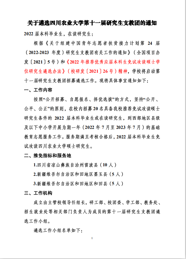 关于遴选四川农业大学第十一届研究生支教团的通知.pdf