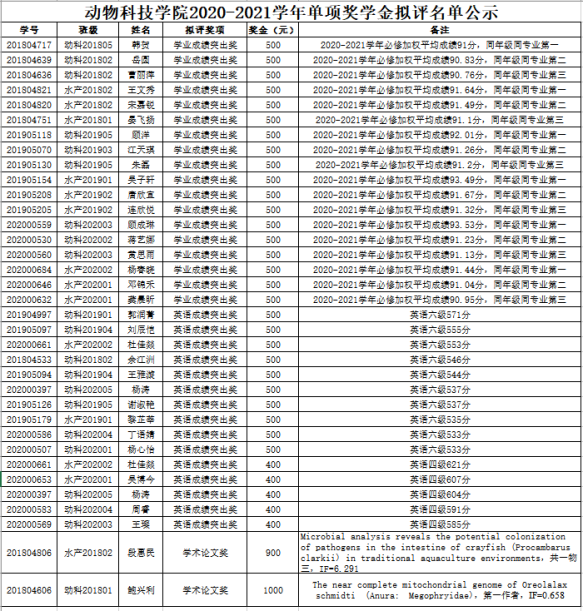 2020-2021学年动物科技学院本科生单项奖评审办法