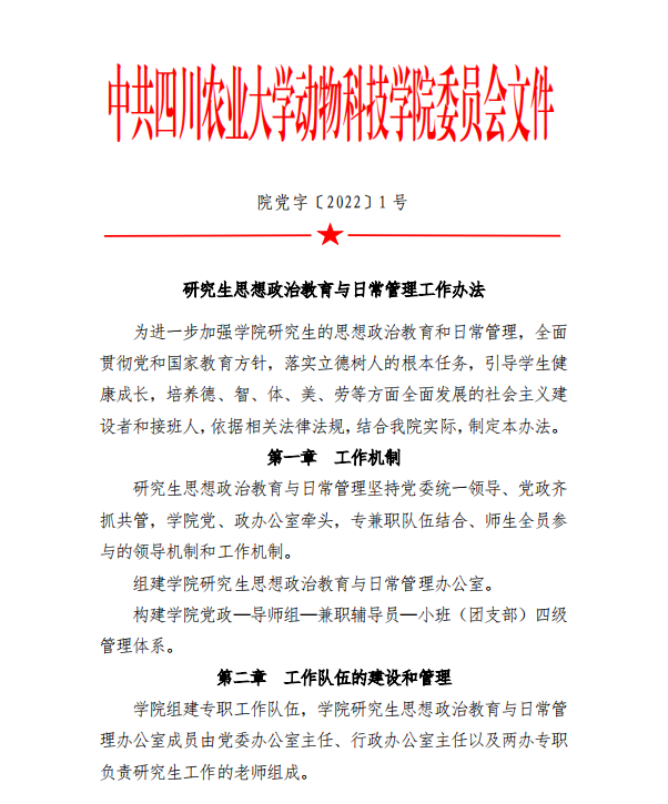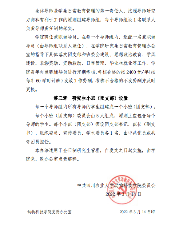 动物科技学院研究生思想政治教育与日常管理工作办法