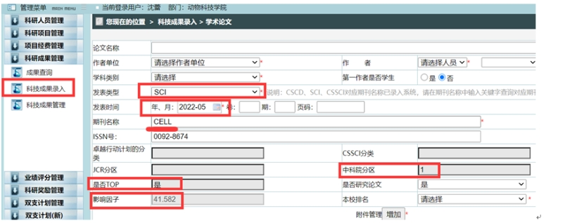 1、学术成果参照学校科技管理处及相关部门的认定结果。以教师在四川农业大学科技管理系统内录入后审核通过的结果为准,未录入或审核的以教师在科技管理系统内查询结果(川农科技管理系统查询示意图,仅教师可查)。