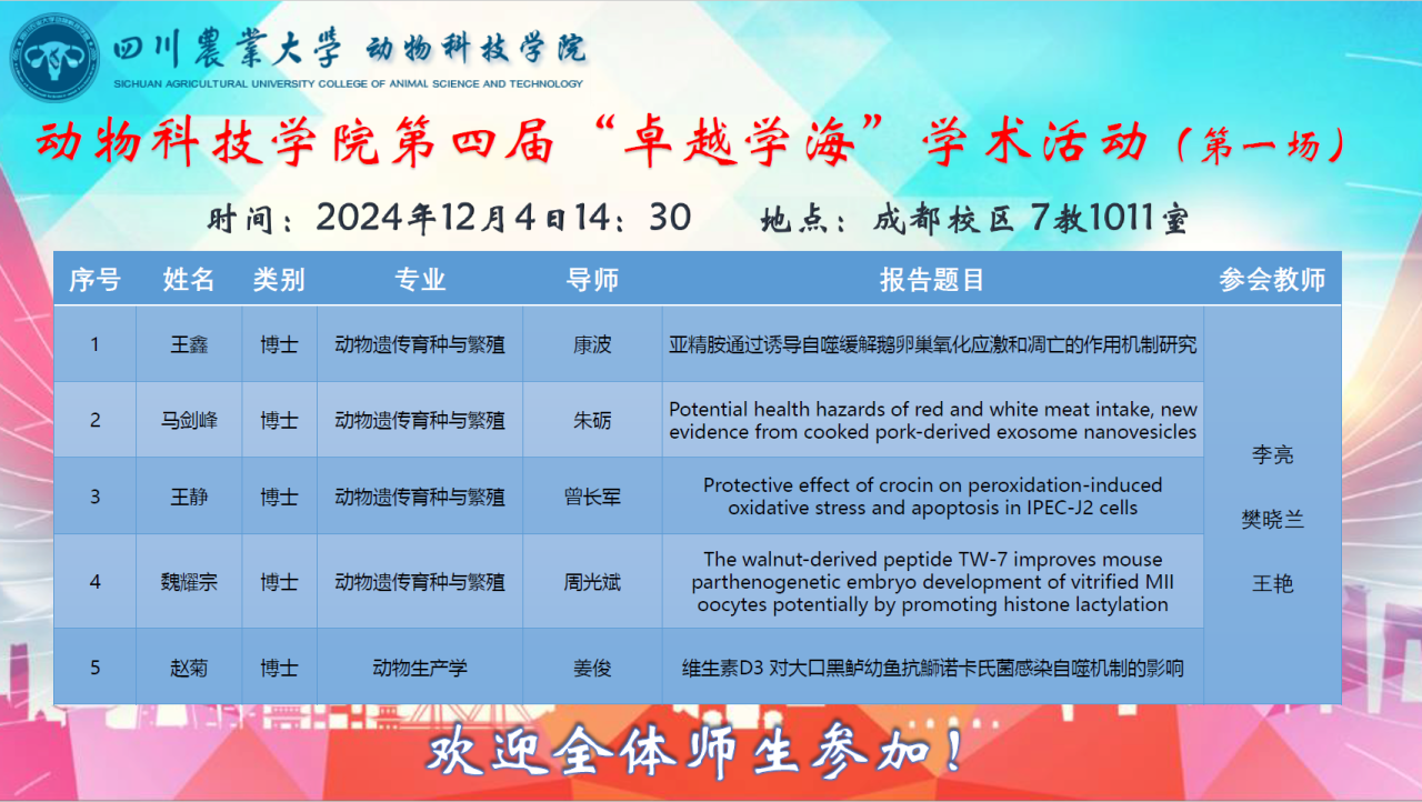 动物科技学院第四届“卓越学海”学术活动顺利举办